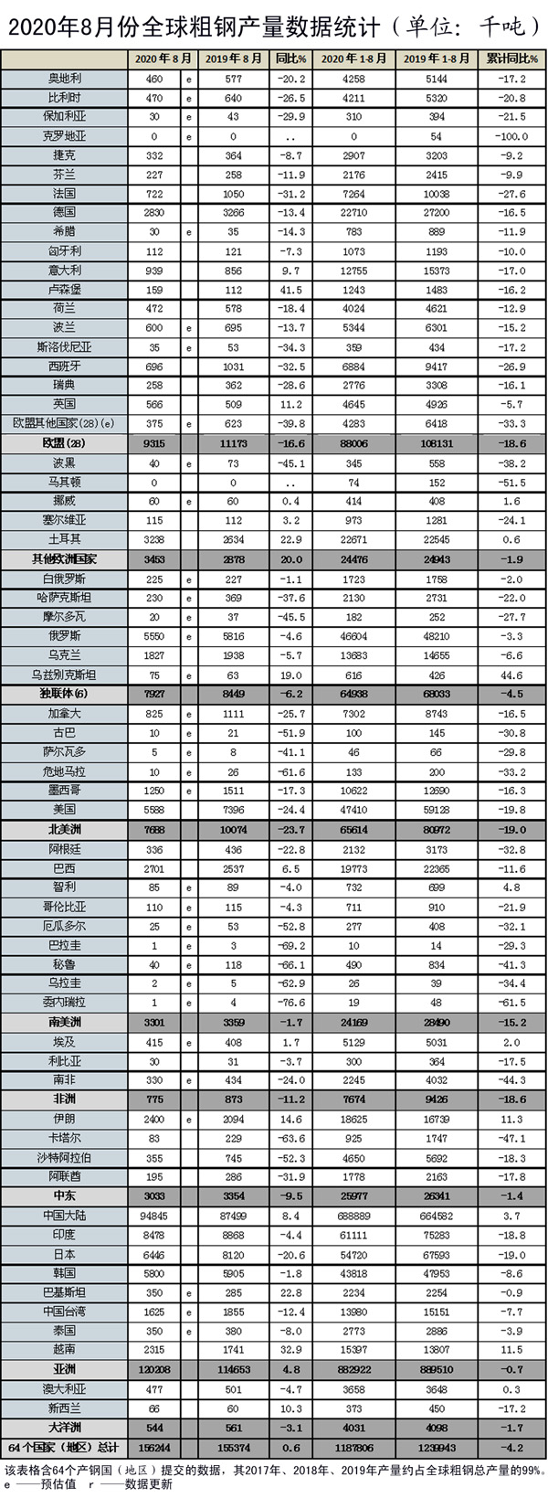 8月份全球粗鋼產(chǎn)量同比增長(zhǎng)0.6%