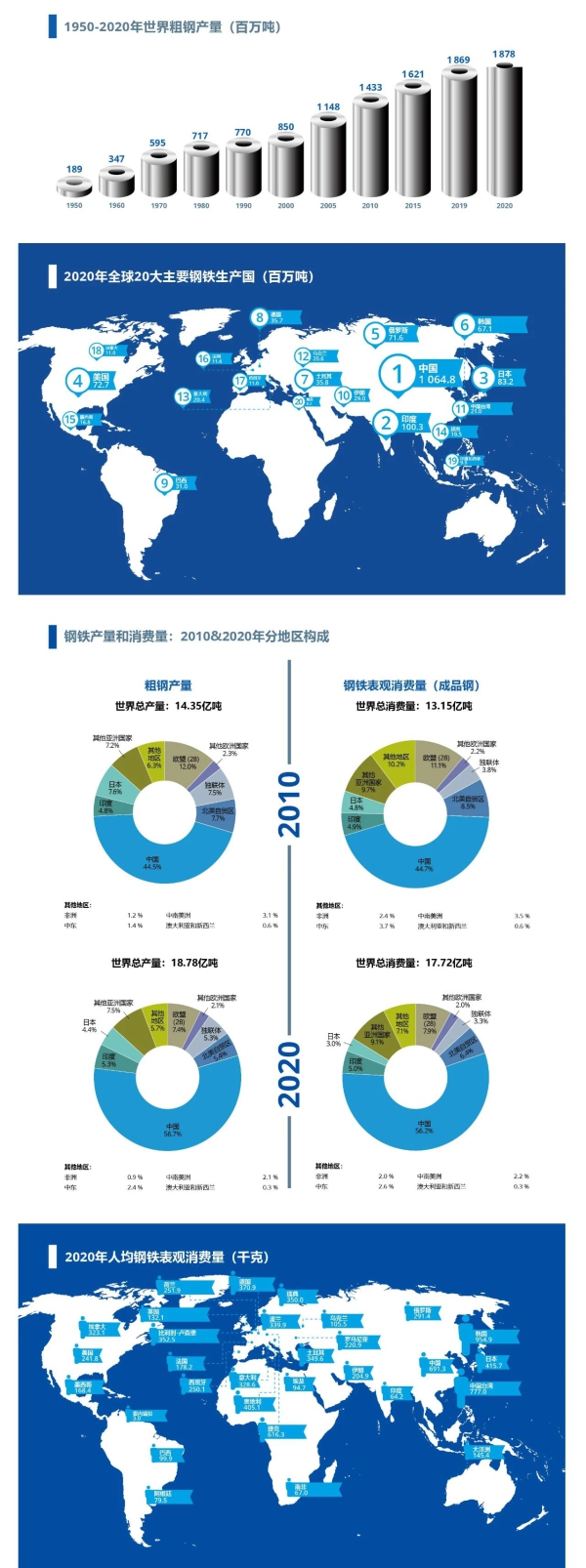 世界鋼鐵協會發布《世界鋼鐵統計數據 2021》,該手冊通過鋼鐵產量、鋼鐵表觀消費、全球鋼鐵貿易量、鐵礦石產量及貿易量等主要指標介紹鋼鐵行業整體發展情況。