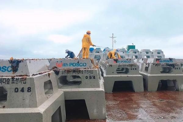 浦項制鐵生產的Triton砌塊被植入海洋藻類植物后,投放到海床上