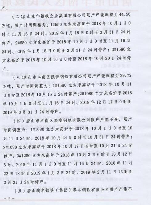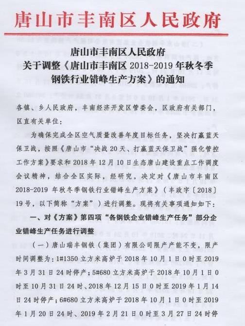 (一)唐山瑞豐鋼鐵(集團(tuán))有限公司限產(chǎn)產(chǎn)能不變,限產(chǎn)時(shí)間調(diào)整;