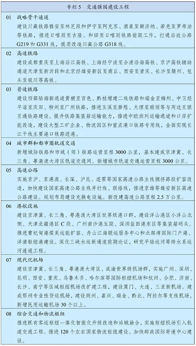 文中明確,“十四五”時期將推進一系列重大工程建設,具體如下: