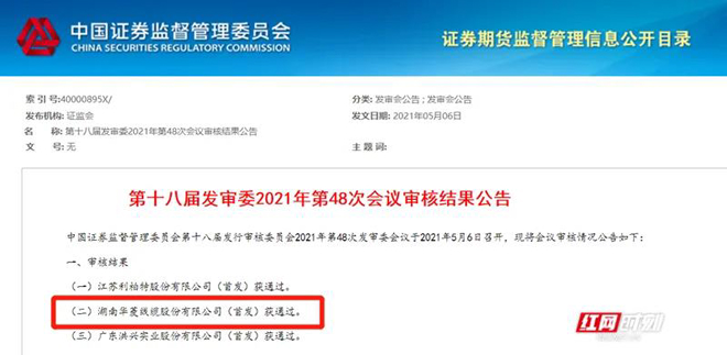 5月6日,湖南華菱線纜股份有限公司(以下簡稱華菱線纜)首發申請獲中國證監會通過。這意味著華菱集團旗下即將又添一家A股公司。