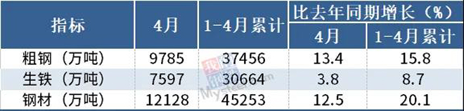 國家統計局數據顯示,2021年4月份,我國粗鋼日均產量326.2萬噸,生鐵日均產量253.2萬噸,鋼材日均產量404.3萬噸。