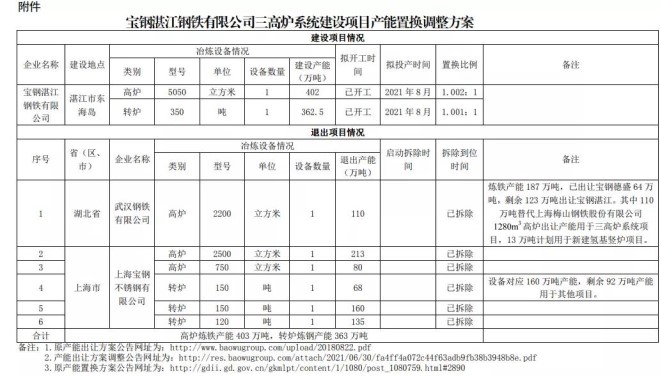 寶鋼湛江鋼鐵三高爐項目產能置換調整方案公示