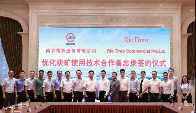 7月13日,南鋼與力拓簽署優化塊礦使用技術合作備忘錄。本次簽署合作備忘錄是雙方繼去年成功實施首單美元區塊鏈結算之后,在包括鐵礦石、鋼材、數字化和技術合作在內的又一次深度擴展。備忘錄簽署之后,力拓將派遣技術專家和南鋼技術團隊保持常態化的技術交流,在礦篩設計、塊礦處理、堆場管理等方面展開合作。