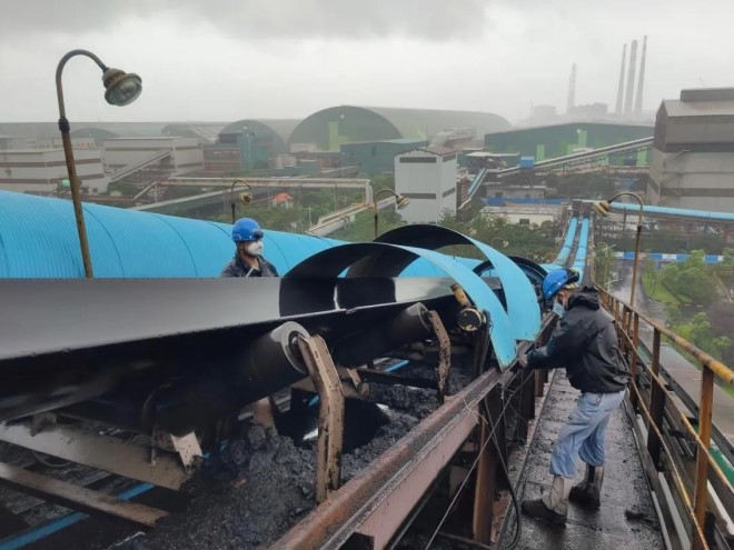 全面排查,加強重點部位防范。為了避免極端天氣帶來的人員財產(chǎn)損失,提高應(yīng)急處置能力,中冶寶鋼組織不同層級隱患排查21次,對“管用養(yǎng)修”行車防風(fēng)防雷設(shè)施、機動車停放區(qū)域、危險化學(xué)品倉庫、成品倉庫、配電室、廠房、辦公樓等可能遭受影響的重點管控區(qū)域開展地毯式排查和及時整改。排查、清理和疏通雨排水、下水管道160余處,排查、固定室外廣告牌、空調(diào)外掛機等易墜落物品390多件,檢查、清理窗臺、陽臺等區(qū)域460余處。開展機動車、“三車”反光標識檢查,重點對極端天氣下員工上下班期間交通安全進行安全宣貫和監(jiān)督提醒。馬跡山港卸船機、裝船機、堆取料機大機均回到錨定位置,安裝鐵鞋、錨定、防風(fēng)拉桿,包扎露天電源操作箱,安裝皮帶機防風(fēng)鏈條和工作船碼頭防汛墻,6條拖輪于7月22日離港回滬避臺。梅山基地對露天料場覆蓋防雨布,加固料堤,防止風(fēng)雨造成料場塌方。
