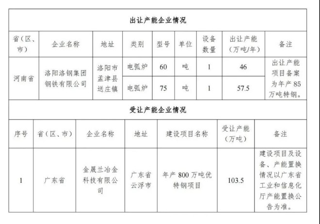 按照《國務院關于化解產能嚴重過剩矛盾的指導意見》 《國務院關于鋼鐵行業化解過剩產能實現脫困發展的意見》和《鋼鐵行業產能置換實施辦法》要求,洛陽洛鋼集團鋼鐵有限公司對產能出讓情況予以公告。