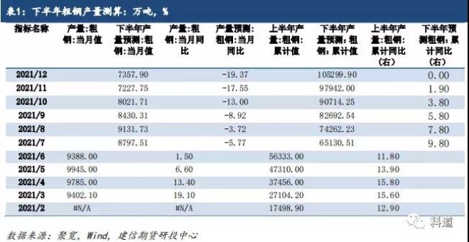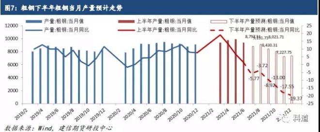 安徽省粗鋼產量壓減工作座談會:要求參會鋼廠對比2020年上報給統計局的產量數據,制定粗鋼產量壓減任務分解表,同時對參會企業提出2021年實際產量不得超過2020年。若按此要求,測算6月份產量后,預計2021年7-12月粗鋼產量同比需壓減約350萬噸,日均減1.9萬噸。