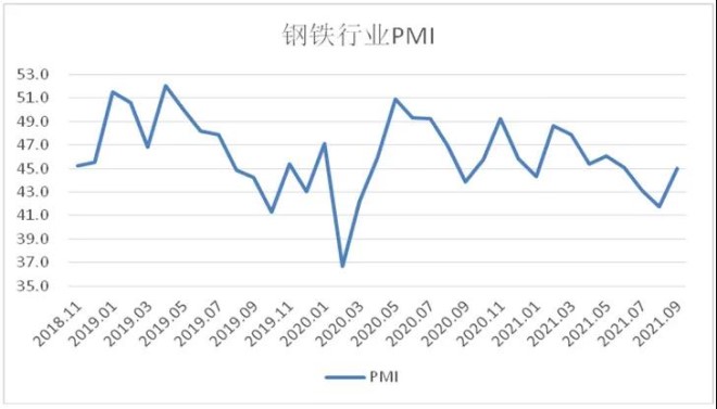 中物聯鋼鐵物流專業委員會調查、發布的鋼鐵行業9月份PMI為45.0%,環比上升3.2個百分點,鋼鐵行業運行依然偏緊。分項指數顯示,9月在鋼鐵限產和能耗雙控等措施的作用下,鋼鐵生產繼續放緩,帶動鐵礦石采購量減少,鐵礦石價格下降。市場需求有所改善,支撐鋼材價格上漲。