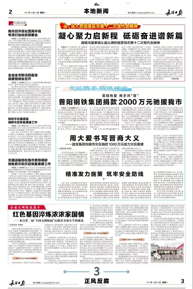 山西多家主流媒體報道指出:河北普陽鋼鐵集團從創立到現在,已累計向社會各界捐款近20億元。在踐行高質量發展的同時,大力弘揚中華民族“一方有難、八方支援”優秀傳統美德和“人道、博愛、奉獻”紅十字精神,及時向遭受洪澇災害的群眾伸出援助之手,是積極響應國家關于防汛救災工作部署的重要舉措,充分體現了普陽參與公益事業、履行社會責任的擔當精神,為山西省全力打贏防汛減災這場硬仗貢獻了重要力量!