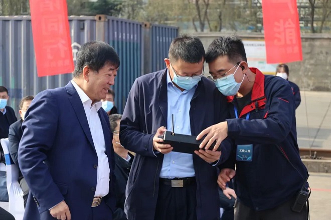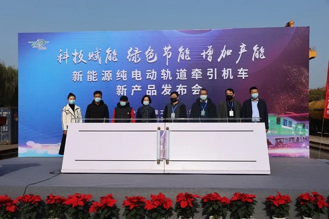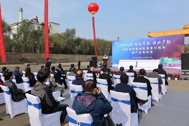 在隨后進(jìn)行的新品發(fā)布會啟動儀式上,與會嘉賓共同見證了新能源純電動軌道牽引機(jī)車緩緩駛向會場,現(xiàn)場觀摩了車輛的空載和實載運(yùn)行情況。