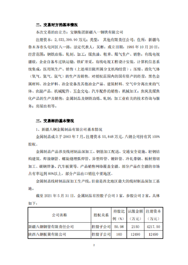 八一鋼鐵擬收購新疆八鋼金屬制品有限公司、新疆焦煤(集團)100%股權