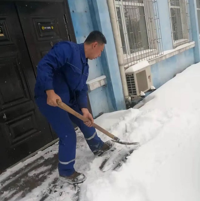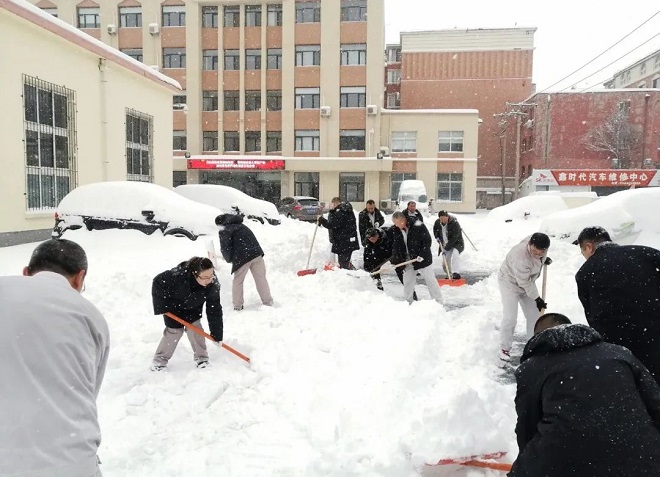 鞍鋼集團工程技術有限公司保安人員、后勤保障人員、青年團員、機關部門及各事業部員工自發清理積雪。