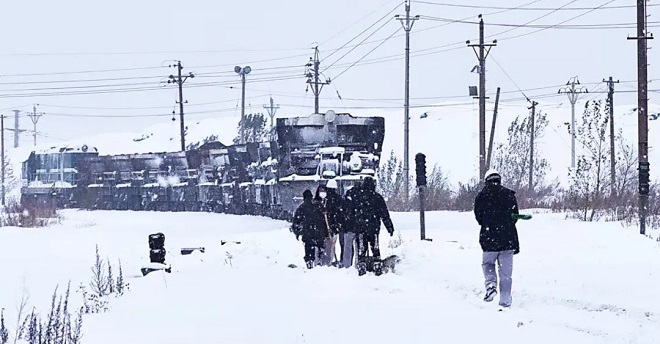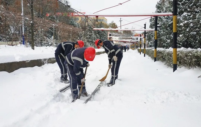 鞍鋼礦業弓礦鐵運公司全體干部職工團結一心,確保在極端惡劣天氣下礦區鐵路運輸生產安全暢通。