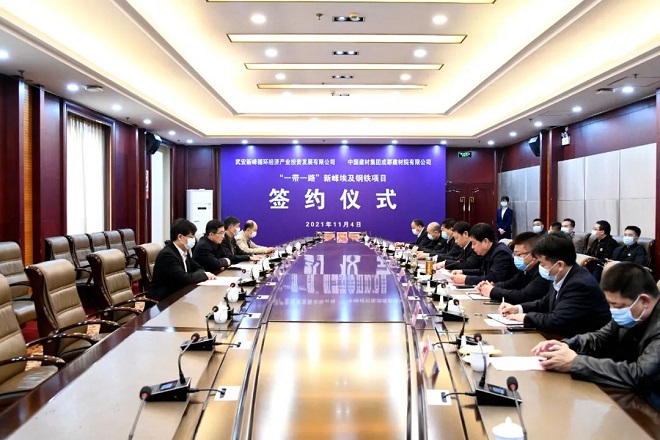 11月4日上午,武安新峰公司與成都建材院的“一帶一路”新峰埃及鋼鐵項目在武安市舉行簽約儀式。武安市委書記劉浩峰出席簽約儀式。中建材成都建筑材料設計研究院有限公司董事長焦烽、建行邯鄲分行行長索理、武安新峰循環(huán)經濟產業(yè)投資發(fā)展有限公司董事長田海奎出席儀式。發(fā)改、商務、科工等有關單位負責同志參加。武安市委常委、常務副市長張國群主持簽約儀式。