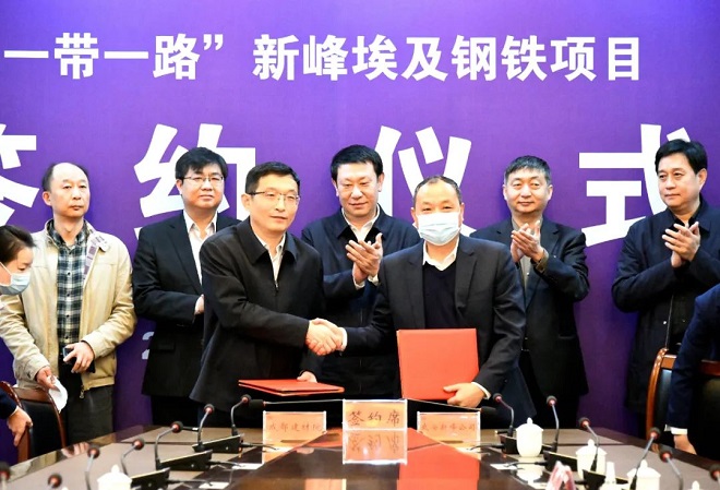 劉浩峰對焦烽董事長一行的到來表示熱烈歡迎,對埃及新峰鋼鐵項目的正式簽約表示熱烈祝賀。