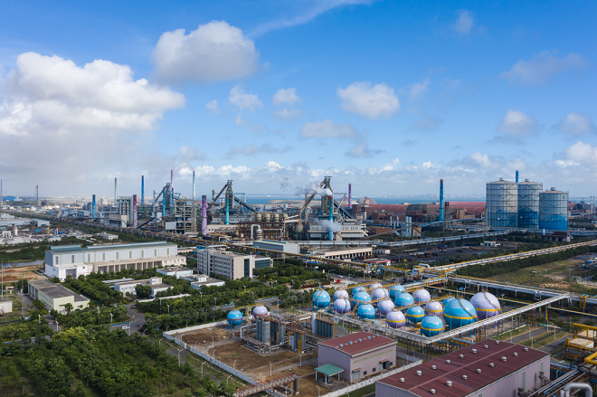 圖為中冶寶鋼運營服務的世界最高效率的綠色碳鋼制造基地湛江鋼鐵