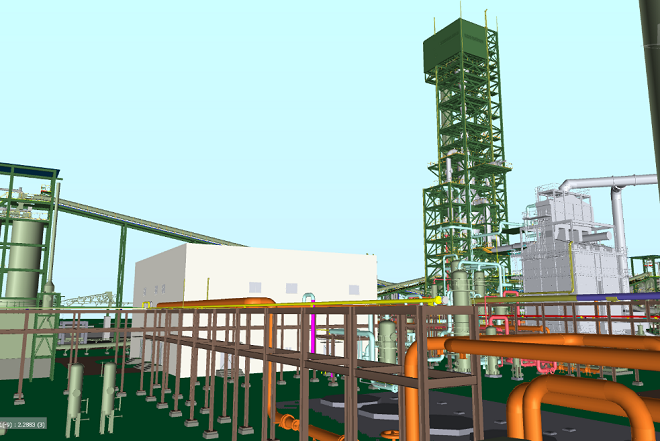 ▲中鋼設備正在建設玻利維亞穆通直接還原鐵綠色低碳短流程綜合鋼廠EPC工程,圖為DRI車間的三維模型