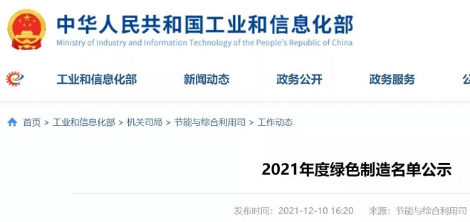 12月10日,工業和信息化部網站發布了《2021年度綠色制造名單公示》,根據《工業和信息化部辦公廳關于開展綠色制造體系建設的通知》(工信廳節函〔2016〕586號)、《工業和信息化部辦公廳關于開展2021年度綠色制造名單推薦工作的通知》(工信廳節函〔2021〕130號)要求,將擬入選的2021年度綠色制造名單進行公示,請社會各界監督。