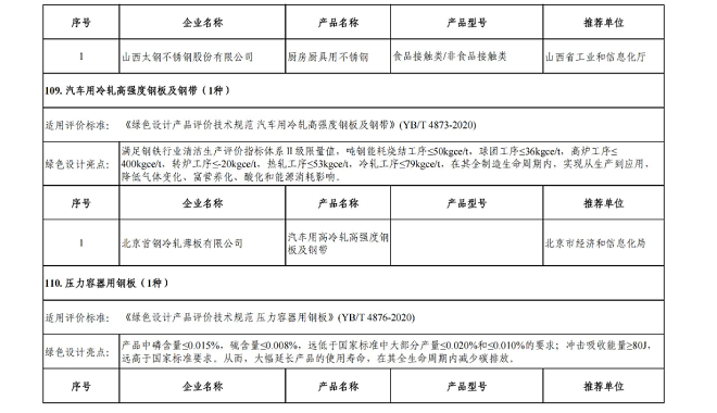 其中,共有24家企業的29種鋼材產品進入綠色設計產品擬選名單: