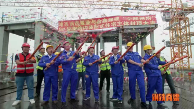 圖:《鋼鐵脊梁》第四集《鋼連萬家》播出津西集團向裝配式鋼結構建筑等產業延伸