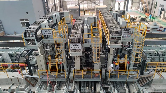 生產線搭載了中冶賽迪主研發、設計、制造的萬能型鋼全套關鍵工藝、裝備及控制技術,包括各類復雜斷面型鋼的孔型設計及壓下工藝規程、BDCD新型開坯軋機、全液壓閉口牌坊式UMCD萬能軋機、RSCD系列門式水平矯直機和懸臂立式矯直機等裝備,以及萬能軋機TCS智能輥縫控制系統、HPC自動液壓位置控制和AGC自動輥縫控制技術、主軋線全自動無人化軋制技術等先進的自動控制系統,整條生產線處于國際領先水平。