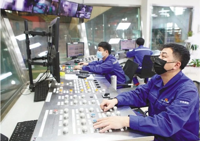 本鋼板材冷軋總廠控制室內(nèi),工人正在緊張工作。