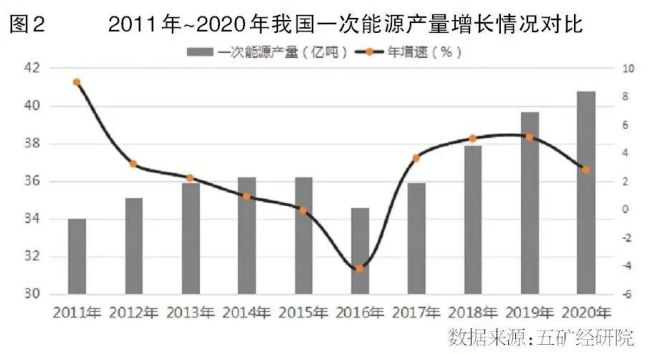 2020年,我國一次能源供給量總計40.8億噸標準煤,同比增長2.8%,占比約82%。其中,原煤產量39億噸,同比增長1.4%,折合能源供給總量占比約57%。原油產量為19476.9萬噸,同比增長1.6%;天然氣產量為1925億立方米,同比增長9.8%;兩者合計能源供給總量占比約19%。