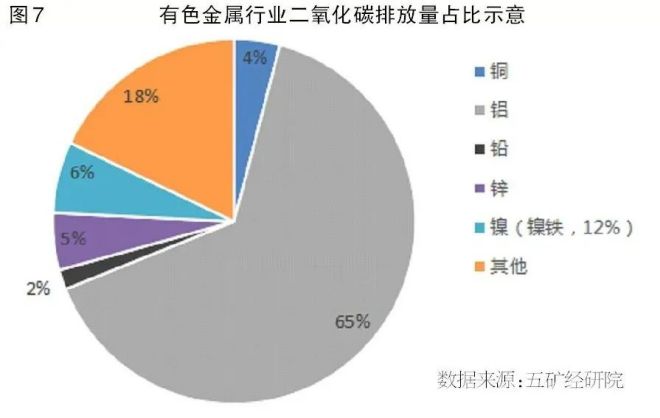 第二,有色金屬行業碳排放總量6.6億噸,鋁行業“獨占”2/3的份額。數據統計結果顯示,2020年,我國有色金屬行業二氧化碳總排放量約6.6億噸,占全國總排放量的4.7%。其中,有色金屬冶煉行業二氧化碳排放量5.88億噸,占有色金屬行業總排放量的89%;礦山采選和壓延加工業碳排放量分別占全行業總排放量的1%和10%。在有色金屬行業中,噸原鋁綜合二氧化碳排放量為11.6噸、折合4.31噸標準煤,行業二氧化碳總排放量4.30億噸,占有色金屬全行業的65%;鎳、鋅、銅、鉛行業的碳排放量占比則分別為6%、5%、4%、2%。可見,鋁行業是有色金屬行業碳排放第一大戶,一直被國家列入碳排放、去產能的名單。