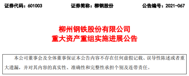 12月24日,柳州鋼鐵股份有限公司發(fā)布了《柳州鋼鐵股份有限公司 重大資產(chǎn)重組實(shí)施進(jìn)展公告》(以下簡稱《公告》)。