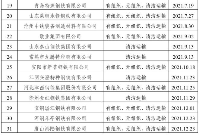 自2020年8月起,中國鋼鐵工業協會開展了鋼鐵企業超低排放改造和評估監測進展情況公示工作。截至目前,已有31家企業在鋼協網站進行公示。已公示企業名單匯總及各企業公示內容整理如下: