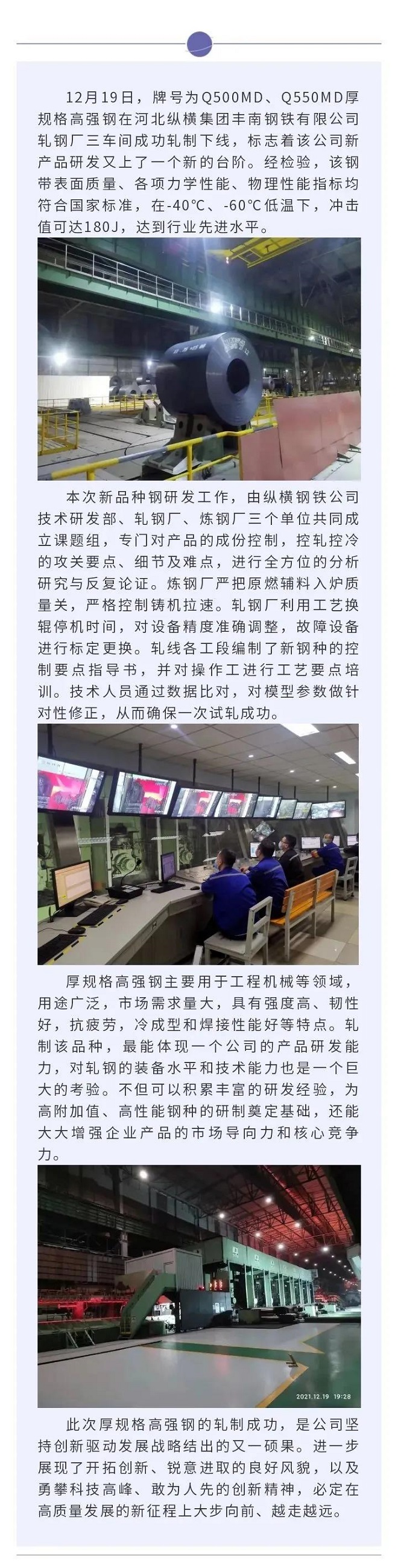 縱橫鋼鐵公司成功開發(fā)厚規(guī)格高強(qiáng)品種鋼并軋制下線