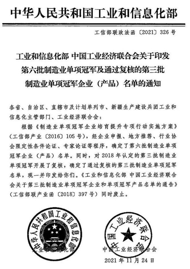 近日,首鋼股份智新電磁正式被認定為第六批制造業電工鋼產品領域單項冠軍示范企業,成功入選國家工信部與中國工業經濟聯合會聯合印發的《第六批制造業單項冠軍及通過復核的第三批制造業單項冠軍企業(產品)名單》。