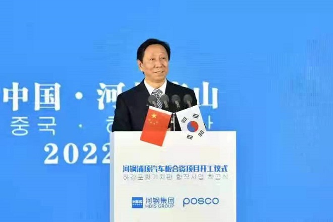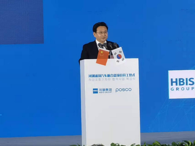 唐山市市長田國良在致辭中表示,河鋼浦項汽車板合資項目開工儀式,是深化中韓經貿合作的大事,也是河鋼集團、POSCO攜手共贏的喜事,更是唐山加快打造河北沿海經濟增長極的好事。河鋼、POSCO兩大世界500強企業共同選擇唐山、深耕唐山,放大了唐山產業優勢,推高了唐山產業地標,為鋼鐵行業由黑變綠、由舊變新、由大變強注入強大動能。田國良希望,河鋼集團、POSCO發揮行業示范引領作用,推動更多新技術、新項目布局唐山,帶動更多合伙人、投資者落戶唐山。