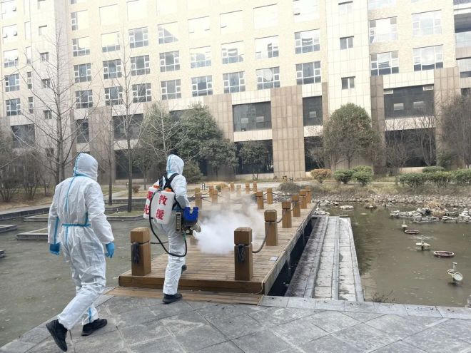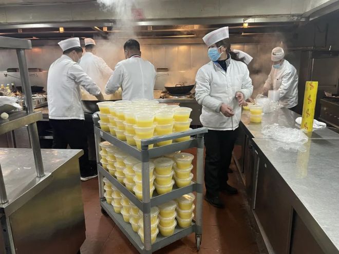 客房部員工全力做好自身防護,嚴格按照標準對客房及公共區域進行細致全面的清掃、消殺;前廳部對在店客人耐心做好解釋工作,在客人全部撤離后對所有客房進行登記、制卡;廚房積極制定菜單,并對現有原材料進行清點、補充;辦公室人員停止辦公、全面遷出;強化對擬預留人員的專業防護安全培訓……
