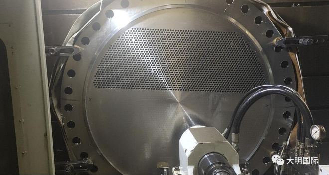目前大明管板加工最大加工直徑達10米,最大鉆深1.1米(市面通常最大直徑7米左右,最厚500mm左右),支持加工碳鋼、不銹鋼、鋯材、覆銅、鎳基合金、鈦材等各種材質(zhì)。往期加工管板示例: