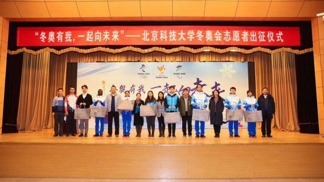 隨著冬奧志愿者歌曲《一起向未來》的優(yōu)美旋律,北京科技大學(xué)冬奧會志愿者出征儀式在教職工禮堂拉開帷幕。參與儀式的領(lǐng)導(dǎo)有校長楊仁樹、黨委副書記于成文、冬奧志愿者工作專班成員、各學(xué)院負(fù)責(zé)人及289名賽會志愿者、107名城市志愿者,儀式由校團委副書記于林民主持。