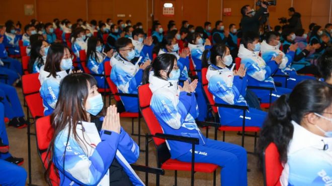 首先,校團委書記王鸝從技能培訓(xùn)和服務(wù)保障兩方面介紹學(xué)校志愿者的工作情況,志愿者們通過集中理論培訓(xùn)、模擬上崗訓(xùn)練以及兩次“相約北京”測試活動,切實提升專業(yè)素質(zhì)、實踐技能和服務(wù)能力。同時,學(xué)校方面也將匯聚多方力量,全力做好志愿服務(wù)保障工作,解決同學(xué)們的后顧之憂,高質(zhì)量完成冬奧任務(wù)。