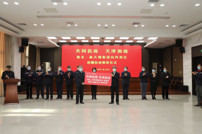 在天津迎戰奧密克戎的第一線,三九寒風中勇毅“逆行”的醫務工作者和志愿者們牽動著每個人的心。1月16日,德龍集團、新天鋼集團通過天津市與屬地紅十字會,對接防疫指揮部,向津南區、河西區、東麗區、寧河區捐贈共計1000萬元的物資和資金,為戰疫英雄們加油,助力抗疫一線各項工作。