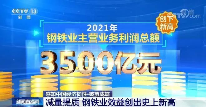 3500萬噸。在鋼鐵全行業保持壓產態勢下,2021年,全國鋼產量比上一年減少了3500萬噸,同時滿足了市場的供需動態平衡。