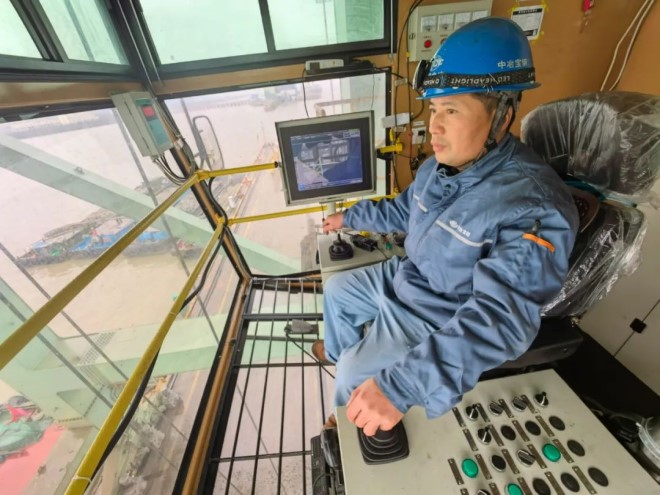 中冶寶鋼綜合碼頭港機作業區域”機長“王傳舉操作港機