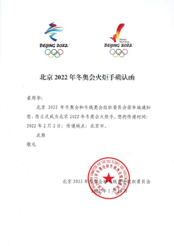 姜周華教授作為科技界和教育界的杰出代表當(dāng)選2022年北京冬奧會(huì)火炬手,受邀參加本次冬奧會(huì)火炬?zhèn)鬟f活動(dòng),成為我校歷史上首位冬奧會(huì)火炬手。