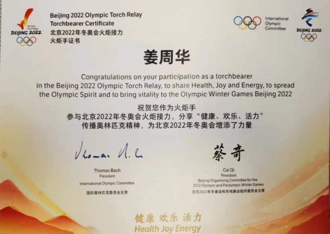 北京2022年冬奧會(huì)火炬?zhèn)鬟f于2月2日拉開(kāi)帷幕。東北大學(xué)姜周華教授作為冬奧會(huì)火炬手參加了2月2日中午在北京冬奧公園的火炬?zhèn)鬟f,排位為第20號(hào)。