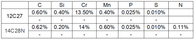 此類冰刀通常表面鍍有一層鈦化合物,經過打磨后兩側最大硬度可達HRC85,減小了冰刀與冰之間的摩擦力,提高了滑行速度,典型的如瑞典山特維克的12C27、14C28N。其中14C28N是馬氏體不銹鋼,冷加工后具有優良的邊緣性能、非常高的硬度和良好的耐腐蝕性能。