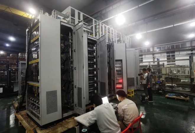 超級電爐核心裝備新型柔性IGBT直流電源出廠測試 ▲