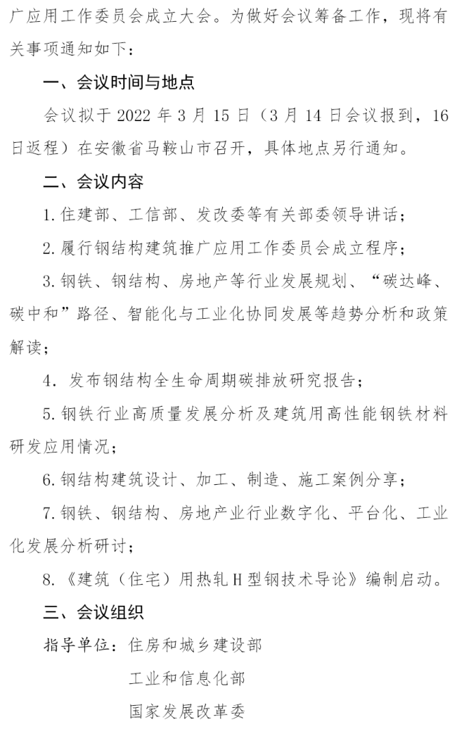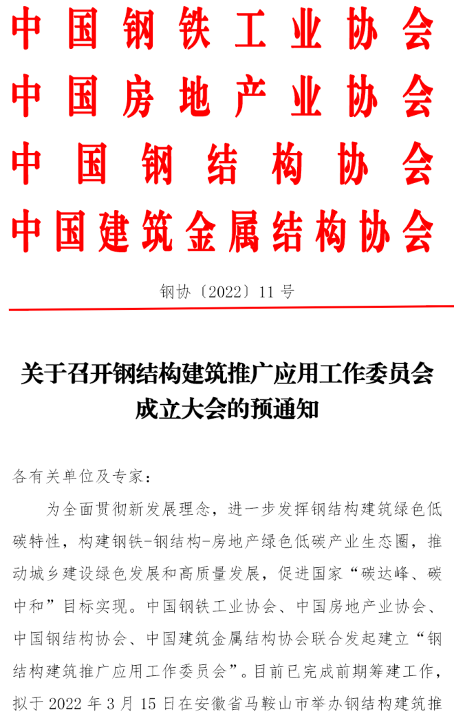 關于召開鋼結構建筑推廣應用工作委員會成立大會的預通知