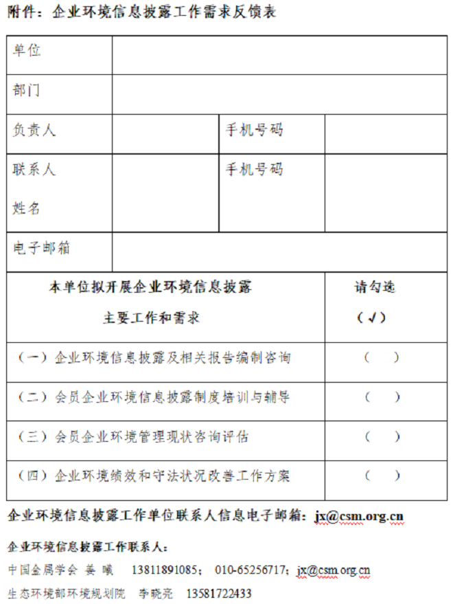 企業環境信息披露工作聯系方式: