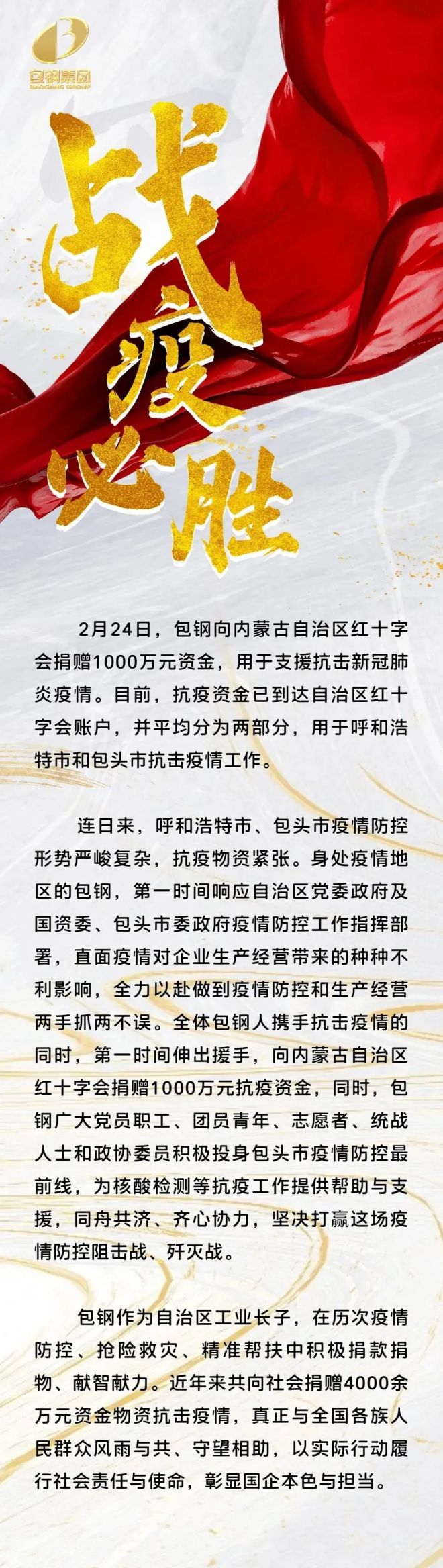 捐款1000萬元!包鋼全力以赴支援呼和浩特市、包頭市抗擊疫情