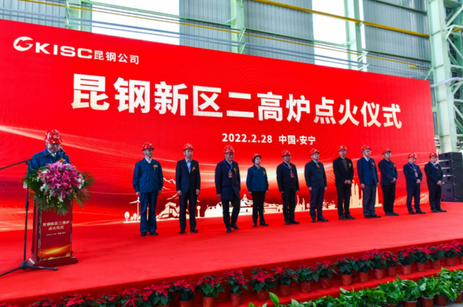 投產儀式上,寶武集團總經理胡望明,云南省國資委副主任謝曙光,云南省滇中新區黨工委副書記趙學鋒,昆明市副市長王迅,昆鋼公司黨委書記、董事長王素琳等出席點火投產儀式。中冶南方黨委副書記、總經理劉一鳴受邀出席,并發表致辭。