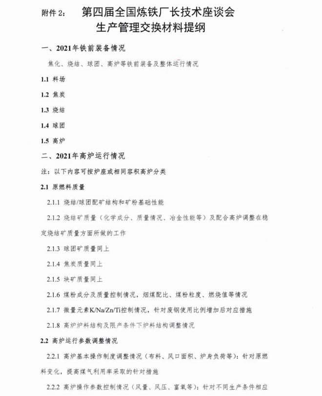 1. 總結(jié)2021年各單位煉鐵生產(chǎn)運(yùn)行和技術(shù)創(chuàng)新情況(具體見附件2:交換材料提綱)。